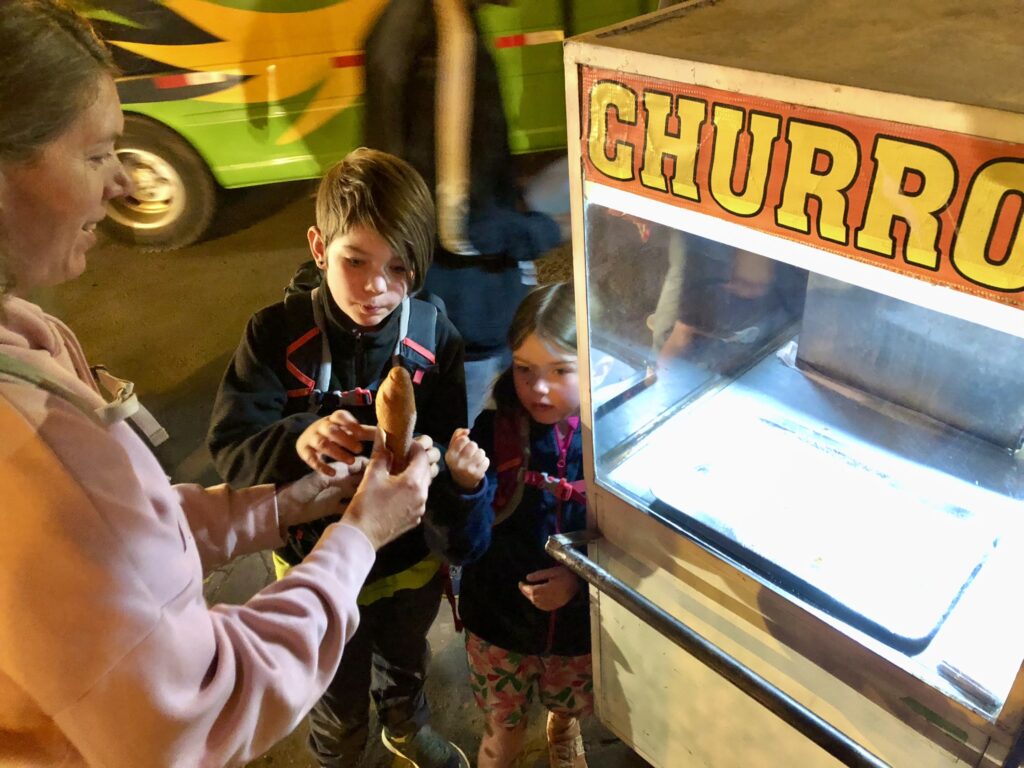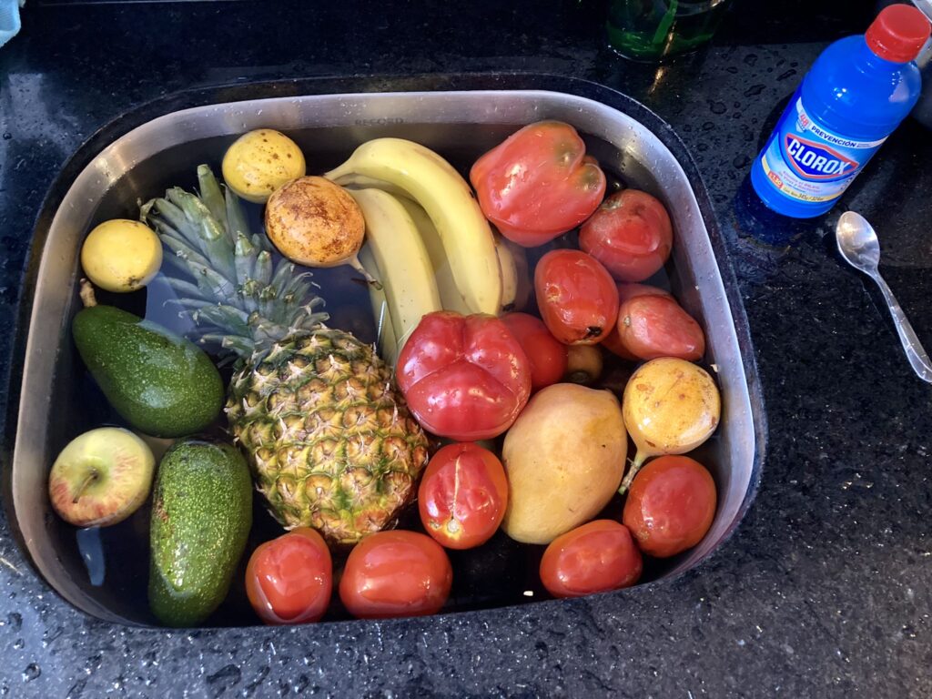 Das Essen: Alle Früchte und Gemüse müssen vor dem Verzehr desinfiziert werden. D.h. alles muss für ca. 10 Min. eingelegt werden. Anschliessend wird alles mit Trinkwasser abgespült oder getrocknet. Erst dann kann es zubereitet und verzehrt werden. Ansonsten besteht die Gefahr von Magendarmbeschwerden, ausgelöst durch Parasiten oder starke Pestizide. Bis jetzt haben wir das Essen sehr gut vertragen. Wir essen ab und zu auch in Restaurants oder kaufen Dinge von der Strasse, wie Popcorn, Eis in Plastiksäckchen oder Churros (Teigrollen in Öl frittiert). Wir geniessen die grosse Auswahl an frischen Früchten wie Mangos, Ananas, Maracujas, Drachenfrucht, Erdbeeren, Bananen und auch Gemüse wie Avocado, Tomaten, Süsskartoffeln, Zucchetti, Brokkoli etc. Der Geschmack ist viel intensiver, wie wir es uns von der Schweiz gewohnt sind.