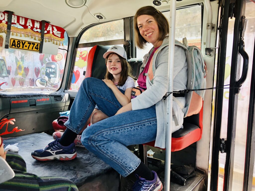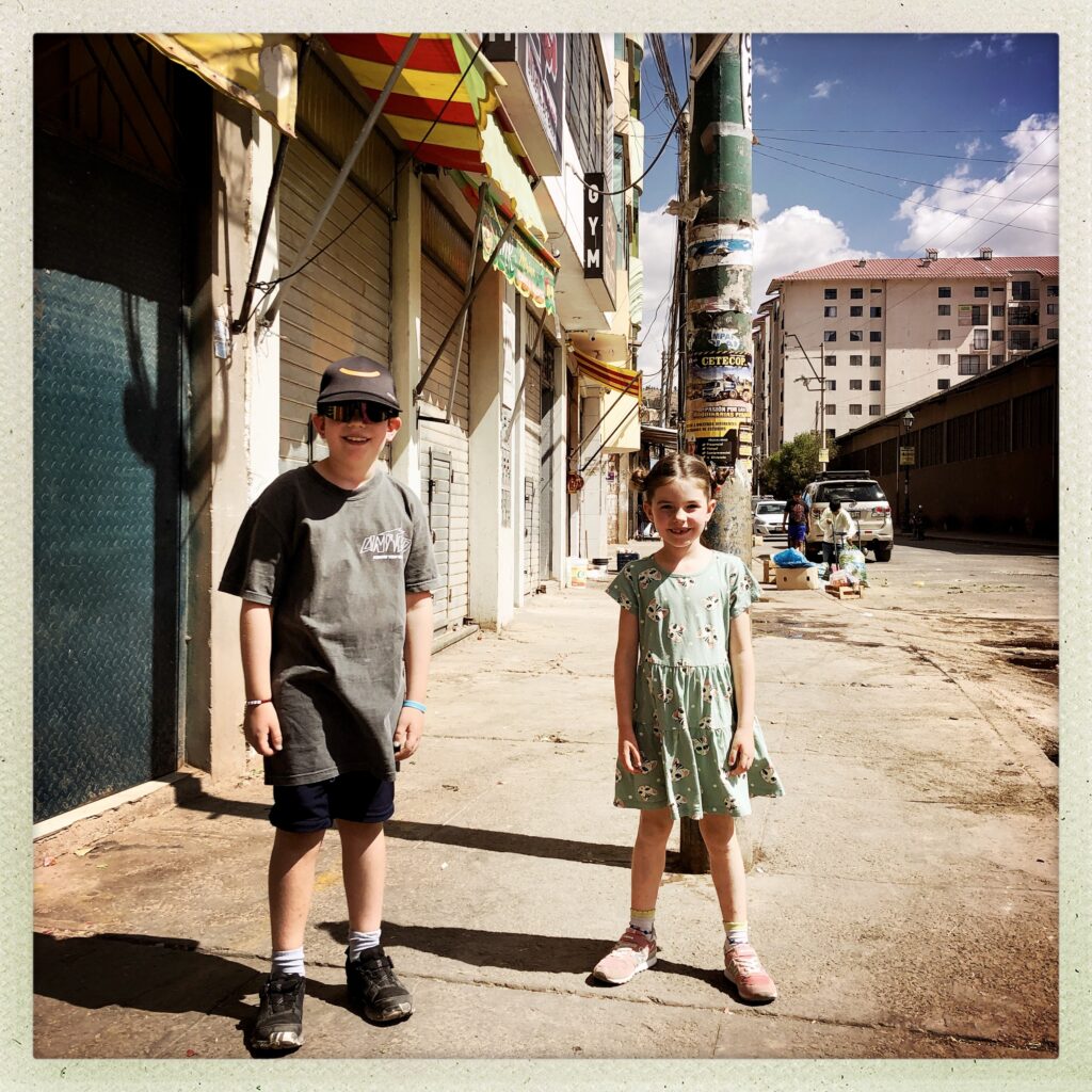 Kochen: Wir kochen mind. 1x pro Woche Schweizer Gerichte wie z.B. „Hörnli mit Hackfleisch und Apfelmus“ oder „Älplermagronen“ (das lieben die Kinder!). Es gibt aber auch oft Reis, Kartoffeln, Chicken Nuggets, Linsen mit Quinoa und diversem Gemüse u.v.m. Das Kochen dauert allerdings auf 3500 m ü.M. viel länger, doppelt bis dreimal so lange. Da wir einen Gasbackofen haben sind Gerichte wie Pizza oder Pommes nicht so einfach zum kochen, deshalb essen wir dies dann auswärts. Zudem sind gewisse Zutaten wie Mozzarella, Salami, Rahm teuer, zum Teil teurer als in der Schweiz. Dafür ist das Gemüse und das Fleisch sehr günstig. Zum Vergleich: 500 g Rindshackfleisch (nicht vom Markt) kostet 3.50.- sFr., 1 kg Tomaten kostet 1.- sFr. Ein Glas Nutella 350 g kostet 6.- sFr.! Wir fanden zum Glück eine Alternative die weniger wie halb so teuer ist!