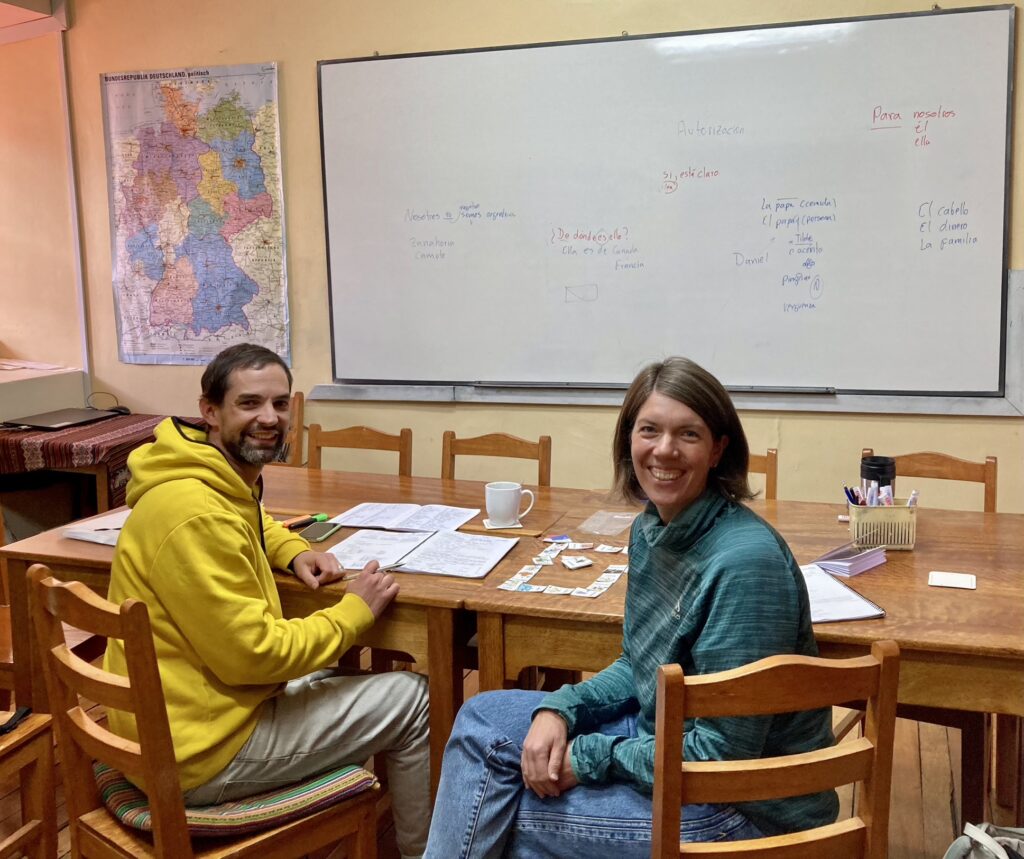 Jede zweite Woche treffen wir uns am Donnerstag Nachmittag mit unseren Mentoren von der SIM, unserer Missionsgesellschaft (Serving in Mission), welche seit 15 Jahren in Peru leben. Wir lernen viel über die peruanische Kultur, diese Treffen sind für uns immer sehr wertvoll.