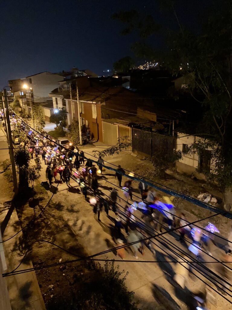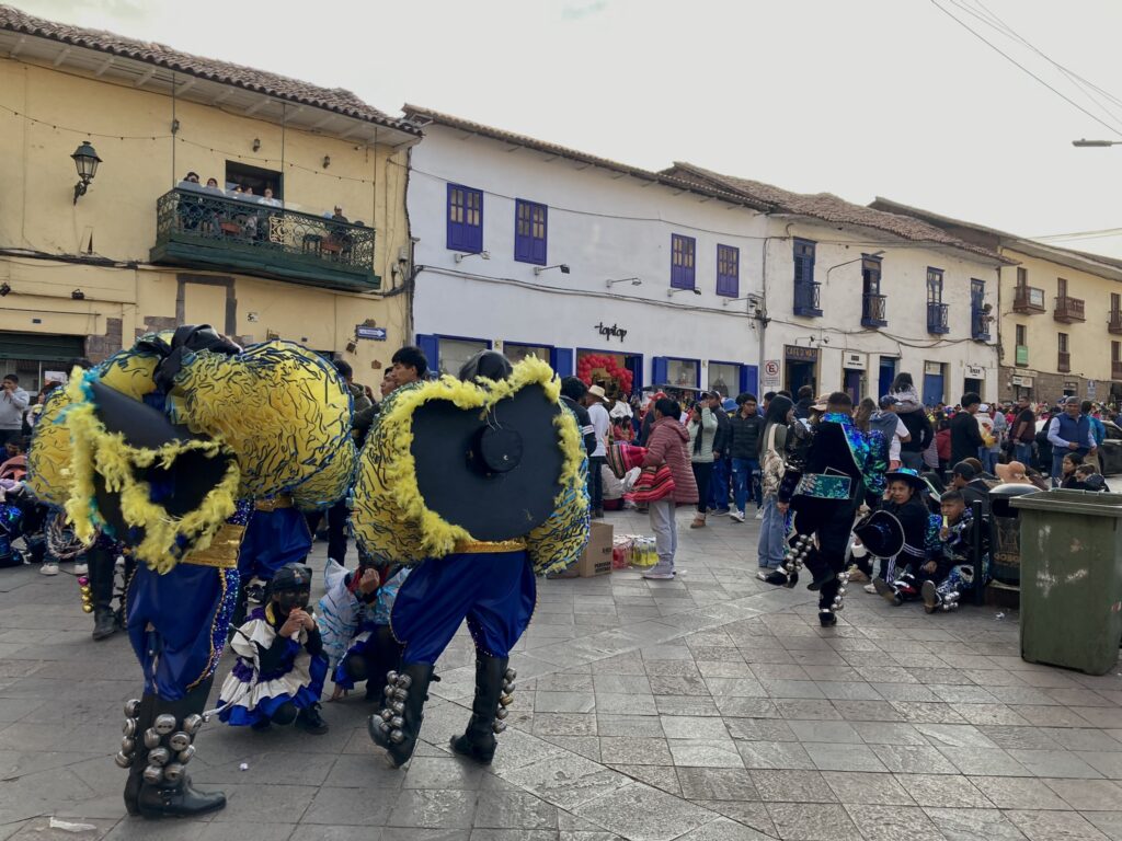 Fiestas gehören hier zum Alltag, denn es gibt fast keinen Tag, an dem nicht irgendwo ein Fest gefeiert wird. Entweder mit Feuerwerk (hören/sehen wir täglich), mit Umzügen auf der Strasse begleitet von lauter Musik oder manchmal auch mit sehr ausgefallenen Kostümen.