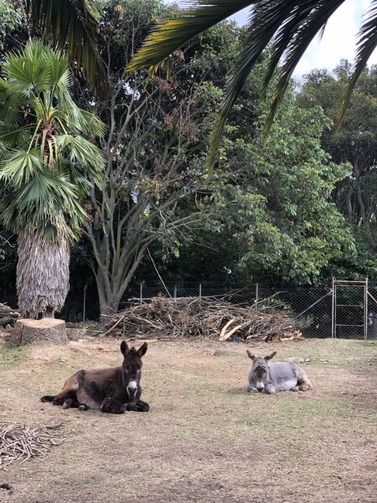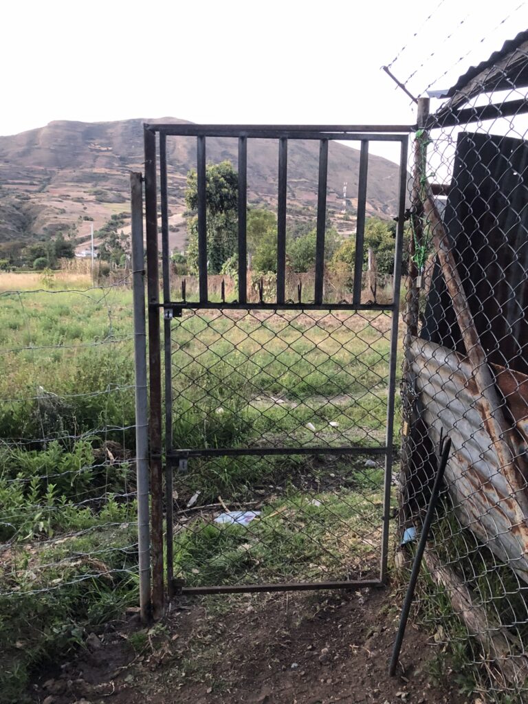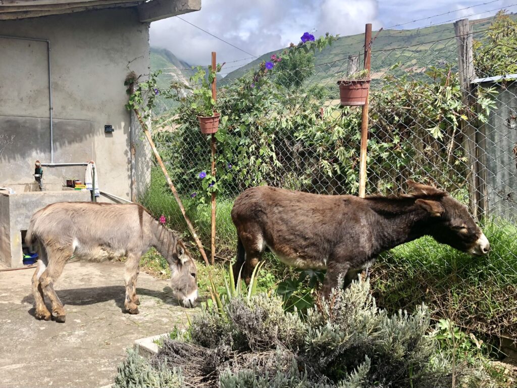 Eine Woche später ruft uns Josafat von Lucmos an. Das ist der Ort mit dem Freizeitbad, etwa 1km entfernt. Er hätte zwei Esel gefunden, die weisen den Hufschnitt seiner Handarbeit auf und es müsste sich um Santiago und Lilly handeln. Nun hat sich die Metalltür, welche an einem Holzpfosten montiert war, so zur Seite gekippt, dass die beiden Esel durchschlüpfen konnten. Dieser Holzpfosten ist nach Jahren morsch und steht nicht mehr aufrecht. Nun haben wir mit dem Besitzer des Hauses gesprochen und er hat einen neuen Zaun um den Garten gezogen und ein neues Tor mit einem einzementierten Eisenpfosten montiert. Seit dem gibt es keine Fluchtmöglichkeiten mehr und der Alltag hat sich etwas beruhigt.