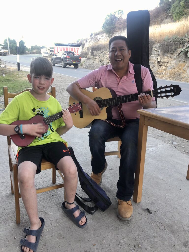 Ilay übt immer wieder auf seiner Ukulele, welche er von seinem Götti zum Geburtstag erhalten hat. Hier mit unserem Nachbarn Fredy. Er wohnt mit seiner Frau und Tochter seit letztem November in Curahuasi und mittlerweile ist eine gut Freundschaft mit ihnen entstanden!