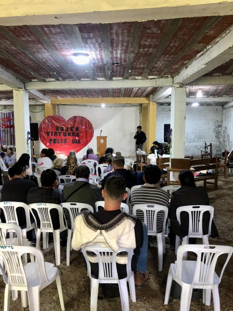 In der Zwischenzeit haben wir verschiedene Kirchen in Curahuasi besucht und uns nun für eine entschieden. Es gibt ca. 15 christliche Kirchgemeinden in unterschiedlichen Räumlichkeiten, wie Garagen, Gemeinderäumlichkeiten oder offenen Gebäuden. Unsere Kirche hat ca. 30 Besucher, davon 3 Missionarsfamilien, denn die Missionare gehen in unterschiedliche Kirchgemeinden. Unsere Kirche befindet sich im Untergeschoss eines Motels.